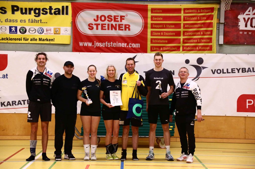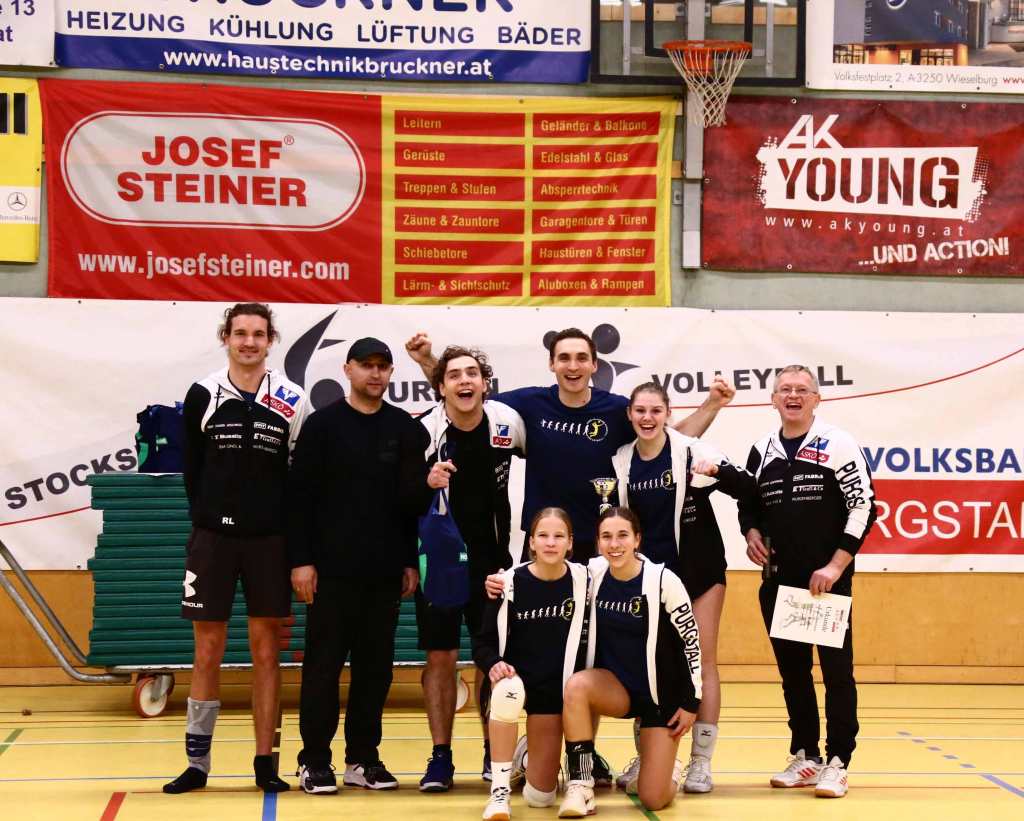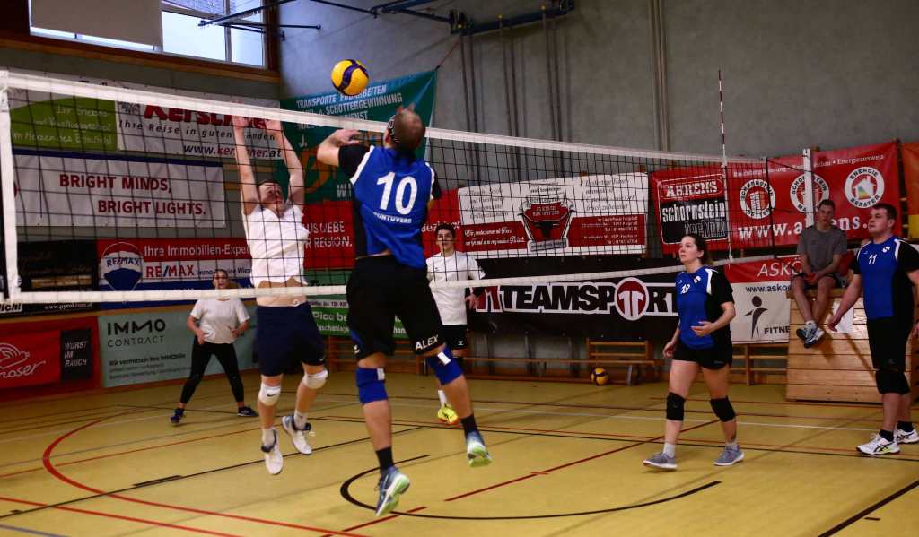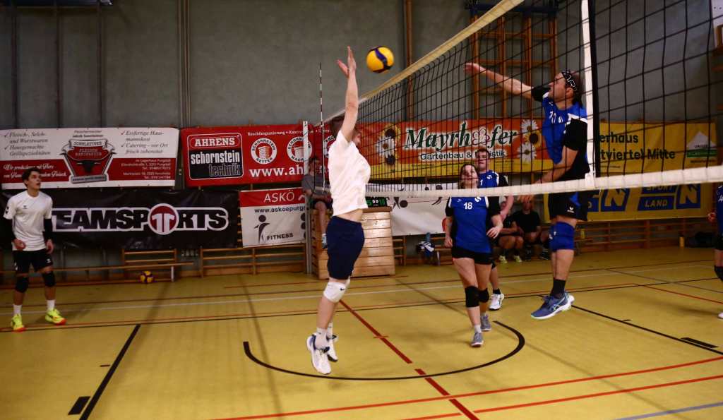 Damit es bei den 11 teilnehmenden Mannschaften möglichst wenig zu einer Unter- als auch Überforderung von Landesliga- und Bundesligaspielern (Gruppe A) gegenüber den 14 jährigen Nachwuchsspielerinnen oder dem coolen Einsatz von den zahlreichen spontan teilnehmenden Eltern welche ohne besonderer Spielerfahrung einfach des Spaßes wegen dieses Turnier genießen konnten. Oder die familiären Mannschaften welche aus Vater, Mutter und den 2 Kindern bestanden. Ja, es hat richtig Spaß gemacht, so einige Statements von Teilnehmer*innen des Volleyballturniers der ASKÖ Volksbank Purgstall. Mit spannenden und einsatzreichen Spielen konnte sich im Finale der Gruppe A die „Krausis“ und in der Gruppe B „Wos spü ma überhaupt“ über den 1. Platz freuen.
