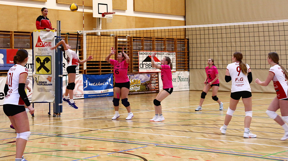 Zunächst setzten sich die motivierten Spielerinnen gegen Ybbs durch. Nach einem gewonnenen ersten Satz und einer Niederlage im zweiten Satz sicherten sie sich in den letzten zwei Sätze den verdienten Sieg.
